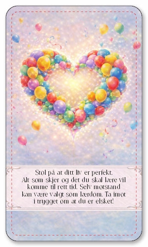 Ordene på kortene er kanalisert og formidlet videre med kjærlighet for å hjelpe deg å lytte dypere til hjertet, sjelen og den indre stemmen som alltid ønsker ditt beste.